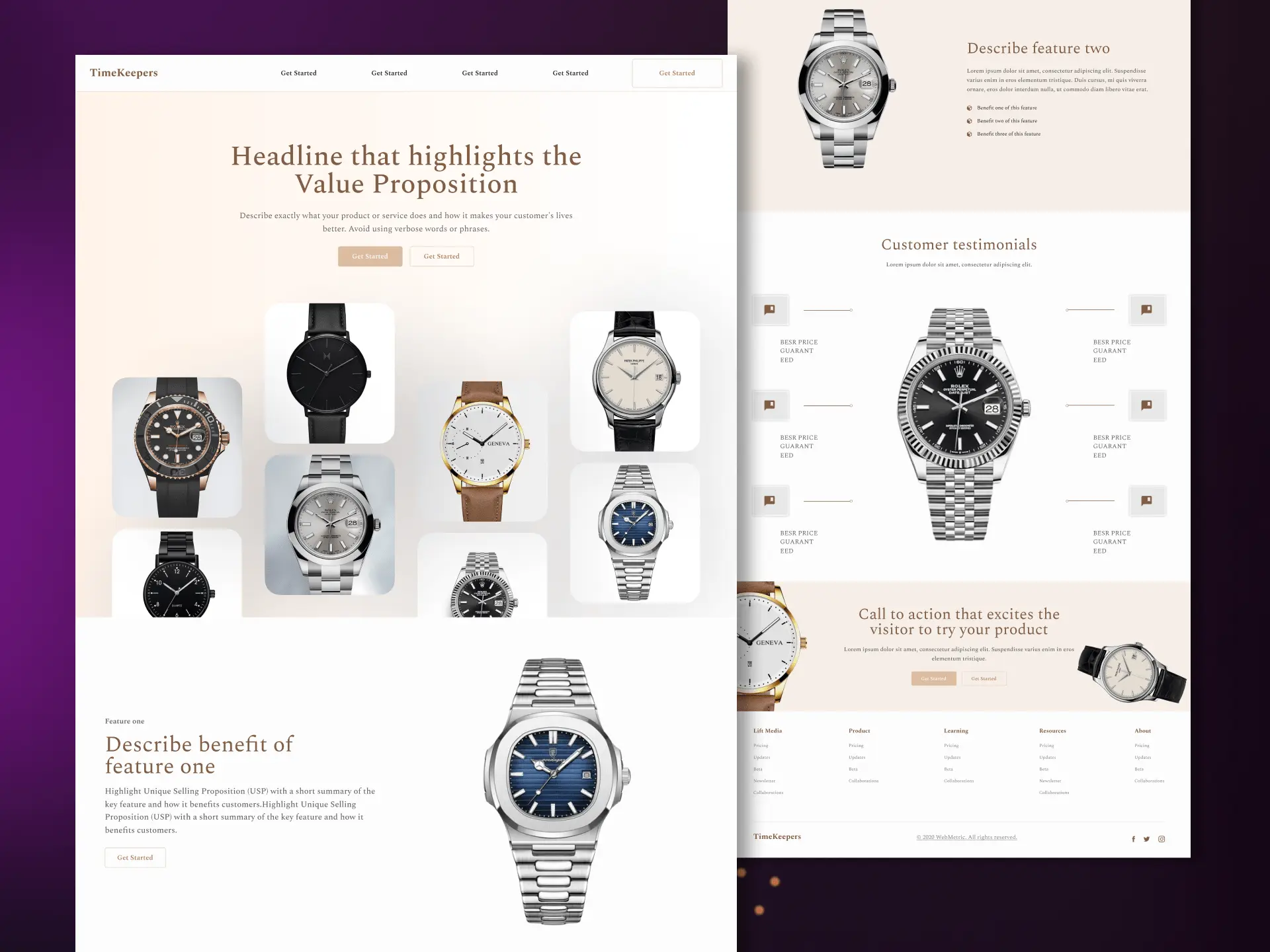 Introducing Timekeepers, a versatile UI kit designed for individuals and businesses looking to showcase their portfolios with style and functionality. With its responsive landing page and seamless integration of Tailwind Variables, customization becomes effortless, allowing users to personalize color schemes, typography, and layout options to reflect their unique brand identity and portfolio theme. Timekeepers features a modern design, flexible layouts, and meticulously crafted components, empowering users to create captivating and user-friendly interfaces for their portfolios. Whether you're a designer, photographer, freelancer, or entrepreneur, this UI kit streamlines the design process and accelerates development timelines, enabling you to present your work professionally and leave a lasting impression on your audience.